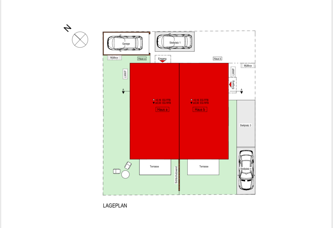 Der Baubeginn erfolgt nach dem Verkauf mindestens einer Einheit – beide Doppelhaushälften werden schlüsselfertig inklusive Maler- und Bodenarbeiten übergeben.